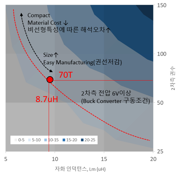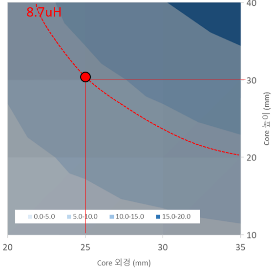철심의 사이즈 대비 보다 높은 요구 출력을 확보하기 위해 공극은 없는 방향으로 설계를 진행하였다.