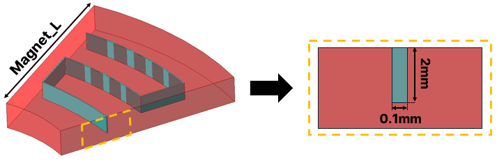 이러한 방법은 모터의 회전자와 고정자에 많이 사용되었고, 최근에는 영구자석에도 적용하여 활용되고 있다. 영구자석에 분할 적층 구조를 설계하는 경우