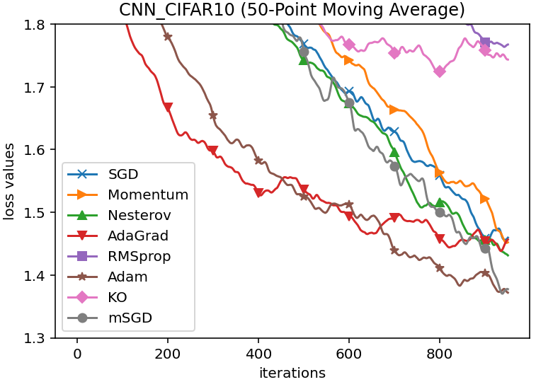 Deep learning, Machine learning, Optimization algorithm, SGD, SGD momentum, Nesterov momentum, AdaGrad, RMSprop, Adam, KO, mSGD