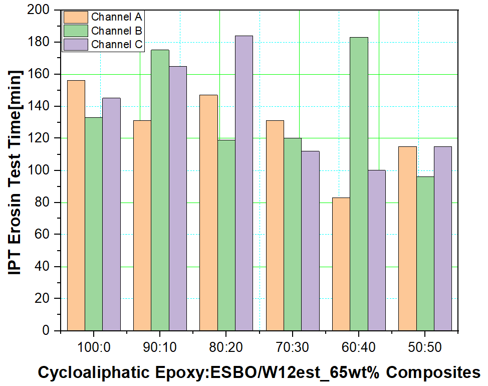 트래킹 지속시간은 ESBO 함량이 증가할수록 CAE:ESBO= 100:0, 90:10, 80:20/W12est_65wt%에서는 증가하였고 이후
