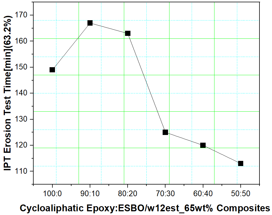 감소되는 경향의 IPT 트래킹 시간을 나타내었다. ESBO함량이 증가할수록 가교점들이 멀리 떨어져 가교밀도가 감소하기 때문에 어느 시점의 표면에서