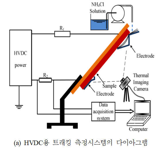한 쌍의 스테인리스 전극이 편평한 직사각형 절연체 샘플 (KS C IEC 60587:125×50×6mm)이 표면에 부착된다. HVDC 정극성의 실험은