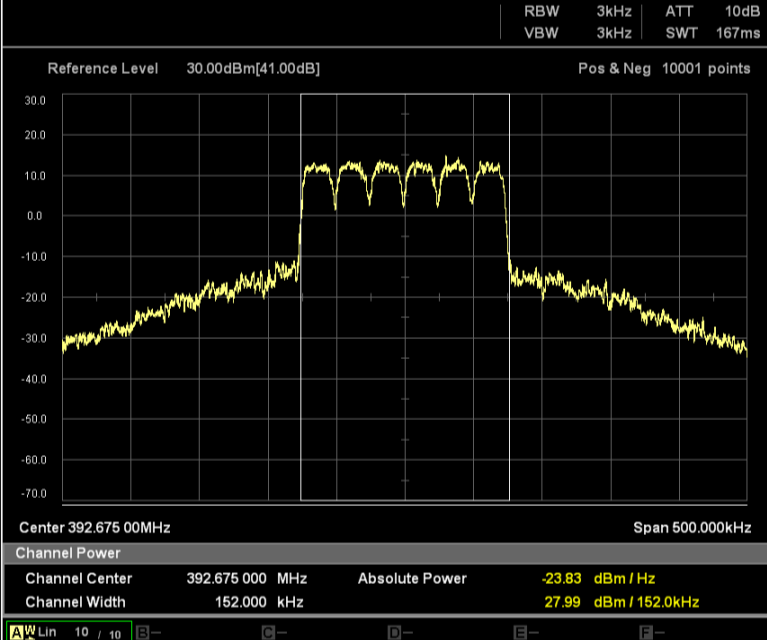 채널을 묶어 사용하는 것을 목표로 물리계층을 설계하였다. 이 경우 총 대역폭은 150㎑(25㎑ × 6)가 된다. 각 채널의 스펙트럼 형성을 위해 롤오프