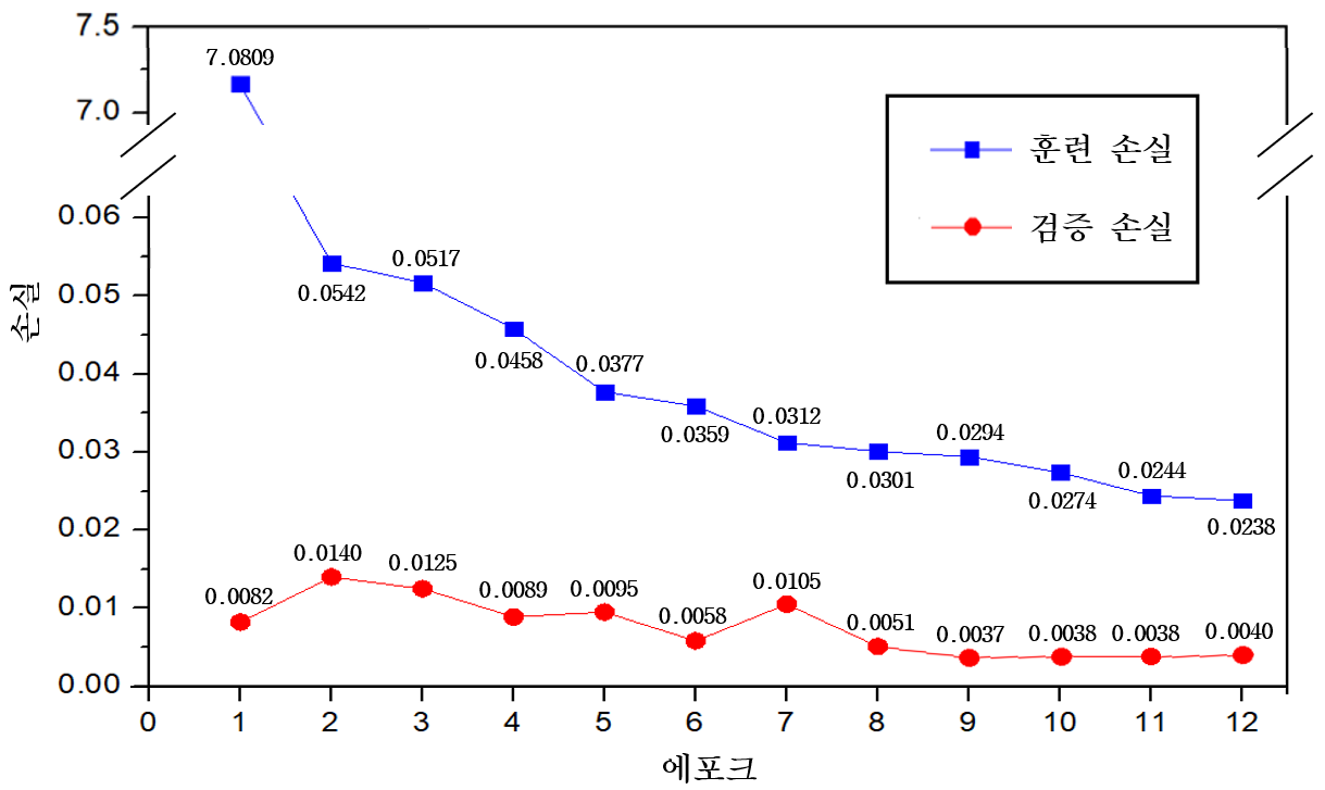 ๊ทธ๋ฆผ 6. ๋ชจ๋ธ ํ์ต ๊ณผ์ ์์ ํ๋ จ ์์ค ๋ฐ ๊ฒ์ฆ ์์ค