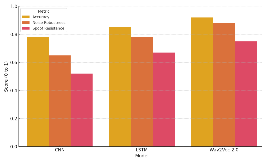 robustness of CNN, LSTM, and Wav2Vec 2.0 models for voice biometric authentication.