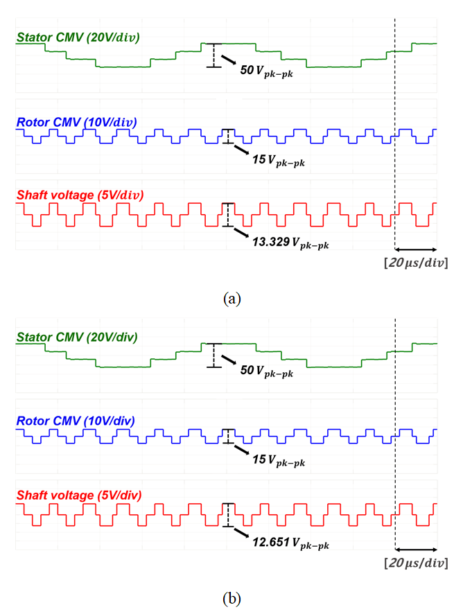 Fig. 10. Simulation Results of shaft voltage (a) model 7, (b) model 8