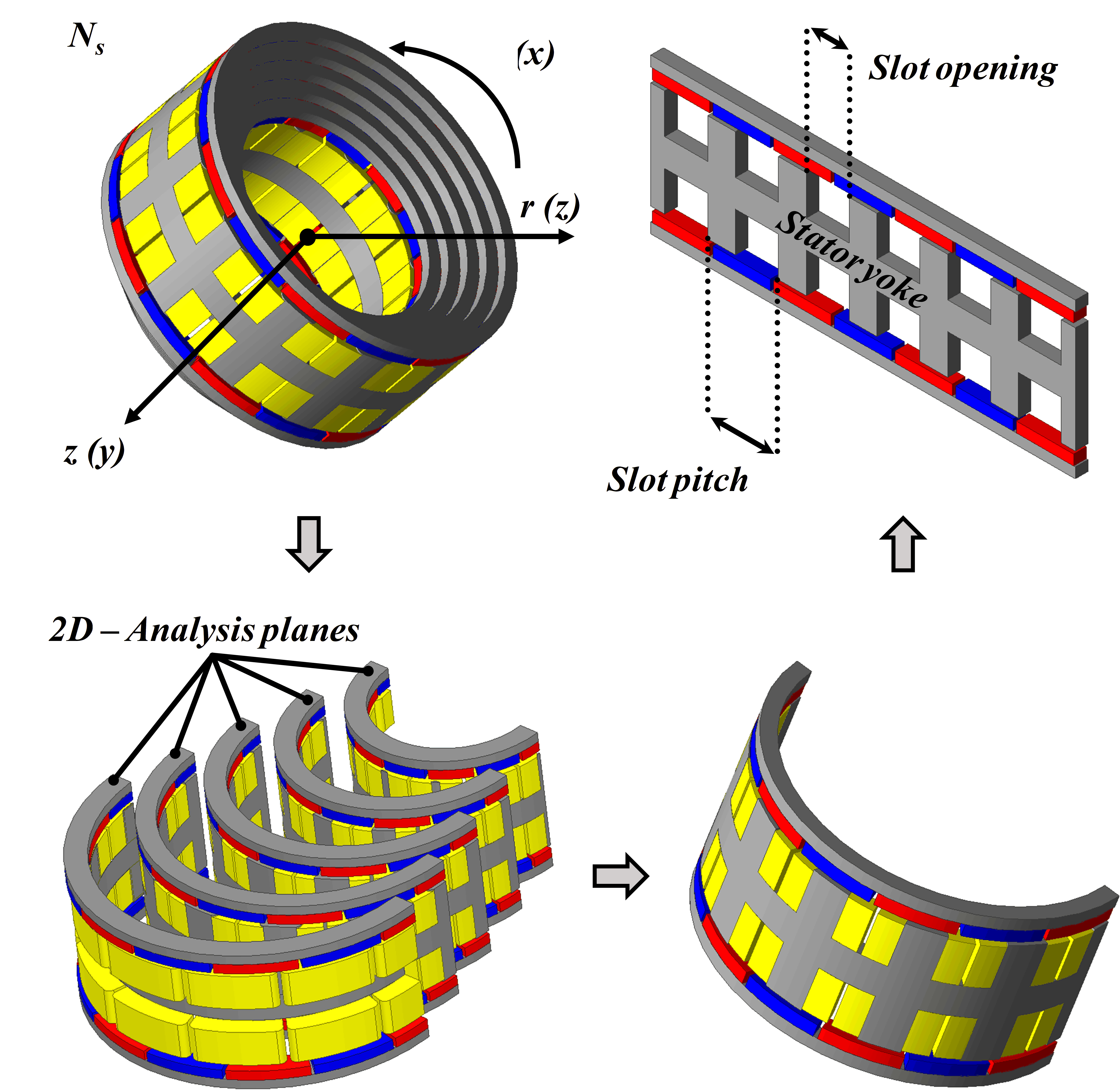 있다. AFPM의 전자계 해석 시간을 단축하기 위해 다양한 기법이 적용되고 있으며, 그 중 Quasi-3D 기법은 3차원 구조를 여러 개의 2차원