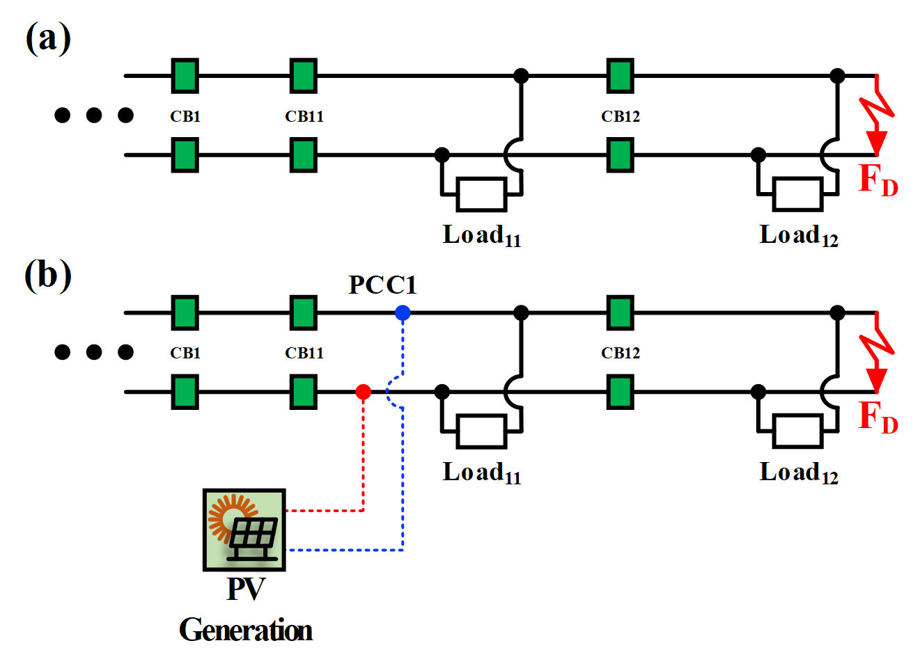 ์ ๋ก ๋ง๋จ์์ ๊ณ ์ฅ์ด ๋ฐ์ํ FD ๋๋ FG ๊ณ ์ฅ์์๋ CB12 ๋๋ CB22๊ฐ ์ฒซ ๋ฒ์งธ๋ก ๋์ํ๋ค. CB12 ๋๋ CB22์์ ๋ณดํธ ์คํจ ์ CB11