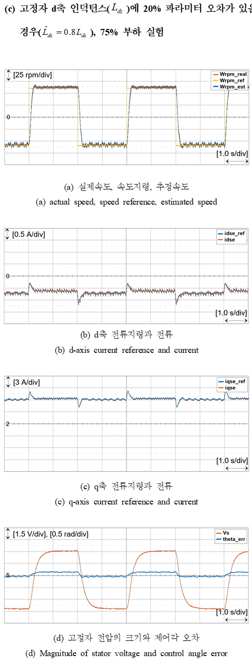 9(d)의 경우는 전류지령의 변경없이 전류지령이 MTPA 곡선을 따라 움직인다는 것을 알 수 있다.