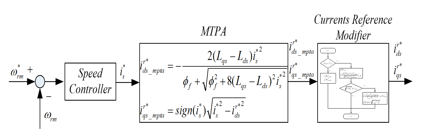 Control)에 의하여 계산된 동기좌표계 d, q축 전류를 각각 $i_{ds\_mtpa}^{r*}$, $i_{qs\_mtpa}^{r*}$로 정의한다.