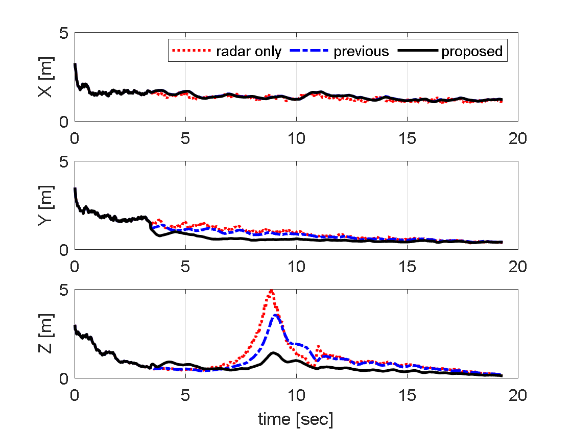 기인한다. 반면, 기존 OOSM 필터는 전자광학 센서가 제공하는 양질의 정보를 역전파를 통해 단회성으로만 융합하기 때문에, 레이더 측정치의 편향 오차가