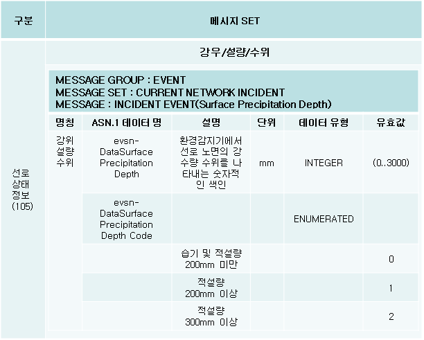 표 4. Data module over track condition (rainfall/ snowfall) and velocity information