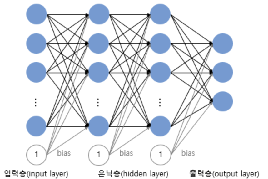 그림 2. ANN구조 (입력층, 은닉층, 출력층)