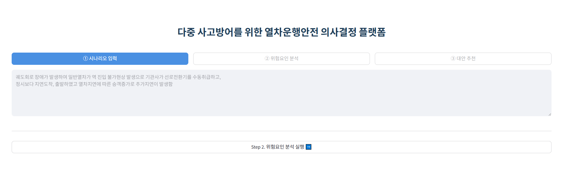 상기 설명한 AI 기반 열차운행안전 최적 의사결정 알고리즘을 적용하여 웹 플랫폼 어플리케이션 시작품을 제작하였다. 그림8-그림2은 실제 의사결정 플랫폼