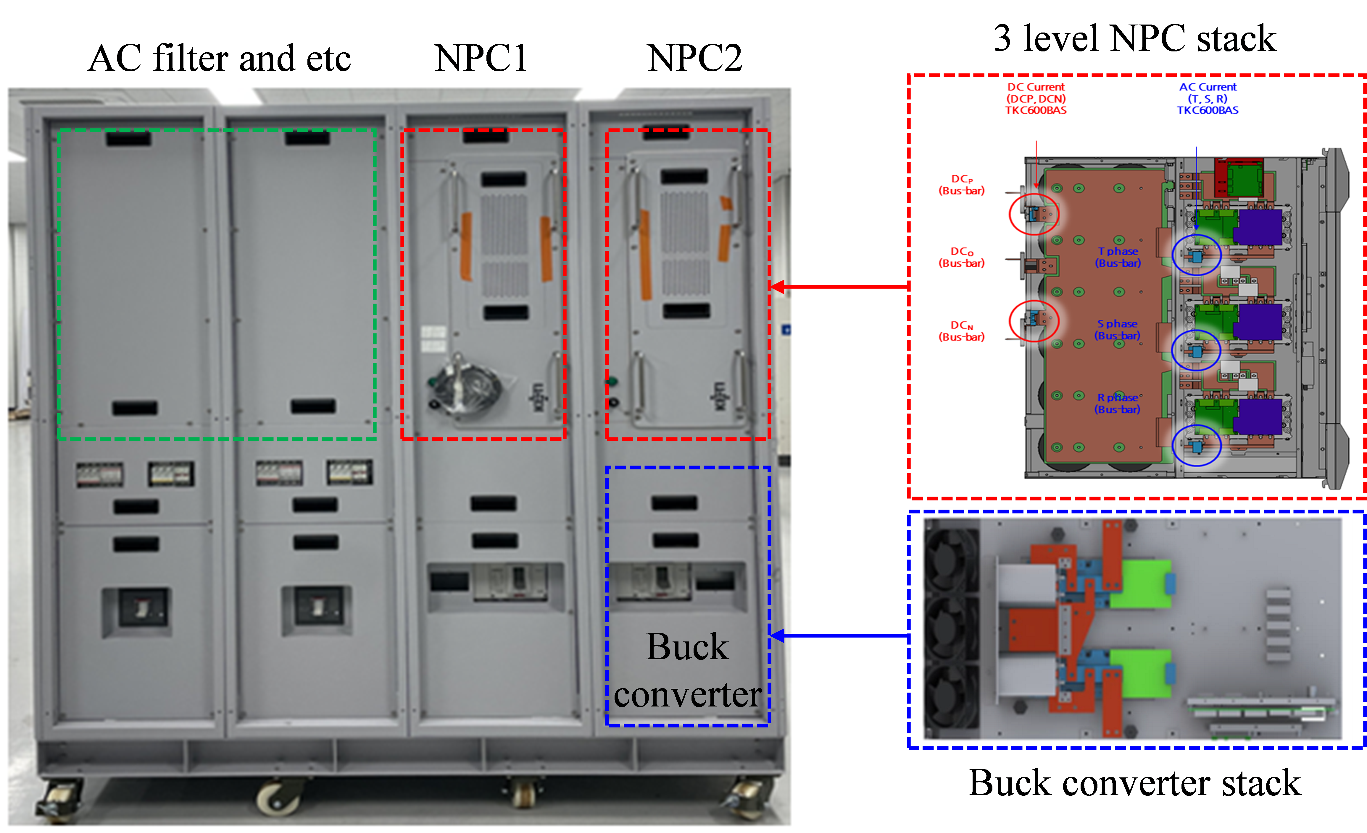정격 전압, 시스템 비용 절감, 효율 향상, 절연 성능 향상, 유지보수의 용이성 등을 고려하여 3-level NPC 컨버터의 직렬 구성으로 선정하였다.