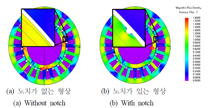 작아지지만, 회전자 전체에 대해 노치가 차지하는 부분은 극히 일부이기에 그 영향은 적을 것으로 예상된다. 최종적으로, 토크에 큰 영향을 주는 것은