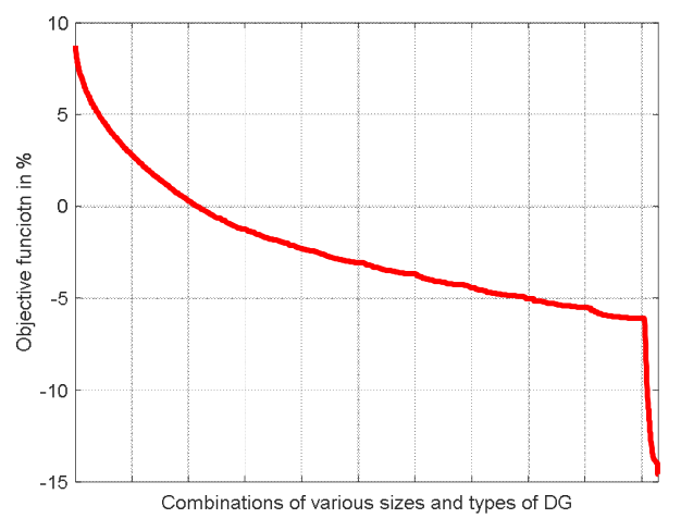 Fig. 7. Relative variation of the average voltage magnitude when the capacity of DG