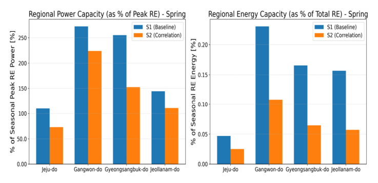 전력·에너지 용량을 재생에너지 피크 출력 및 계절의 재생에너지 총발전량 대비 비율을 지역별로 비교하여 제안 방법론의 실효성을 함께 검증하였다. 이를