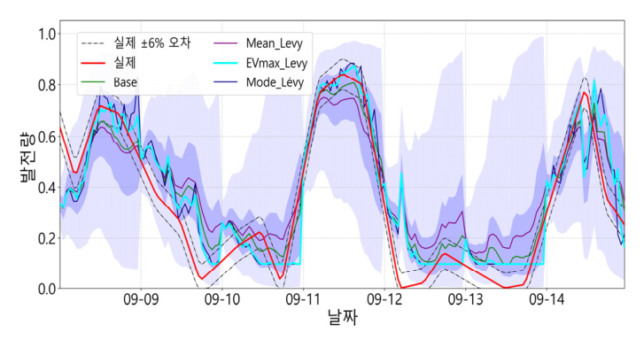 구성함을 확인하였다. 셋째, 레비 프로세스 기반 오차 모델은 발전량이 낮거나 높은 극단적 레짐에서 나타나는 비대칭성과 두꺼운 꼬리를 보다 정교하게
