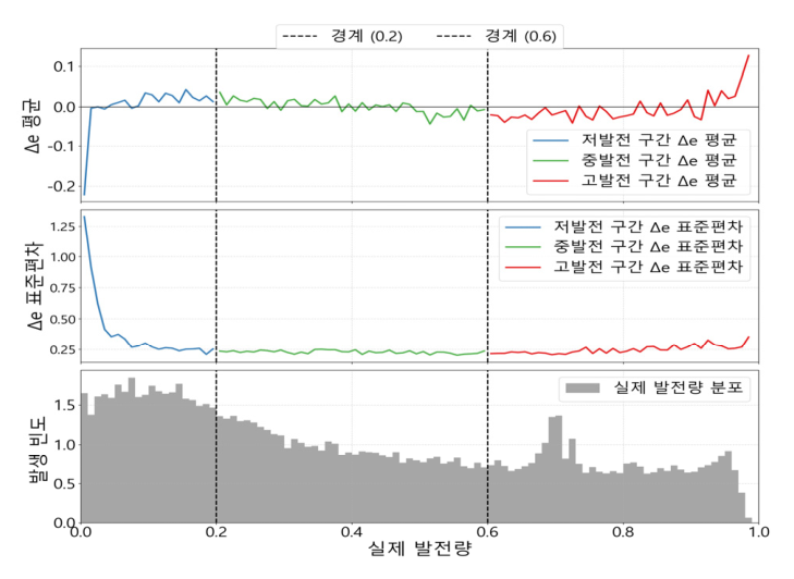 1. 물리적 경계 부근과 중간 영역에서 상이하게 나타나는 오차의 변동성을 반영하기 위해 발전량 수준에 따른 레짐 분류 체계를 도입하여 오차 모델을