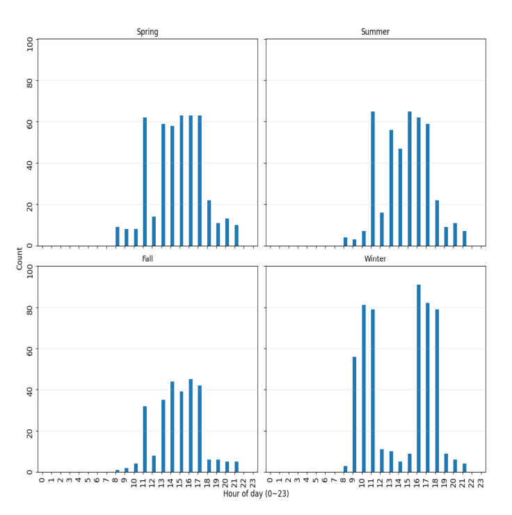 그림 8 계절별 시간대별 수요 부하 감소 횟수