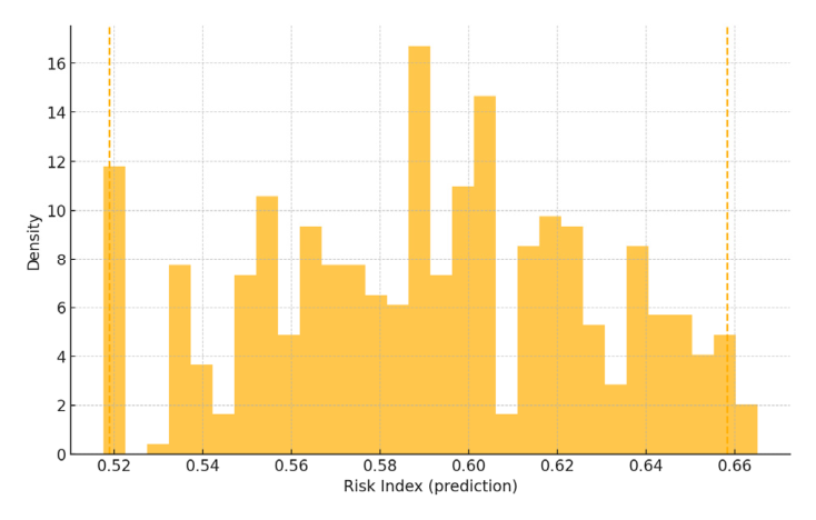 수 있는 위험지수(Risk Index)의 확률 분포를 도출하였다. 이러한 확률론적 접근은 미래 위험도의 통계적 분포(평균, 분산, 95% 신뢰구간