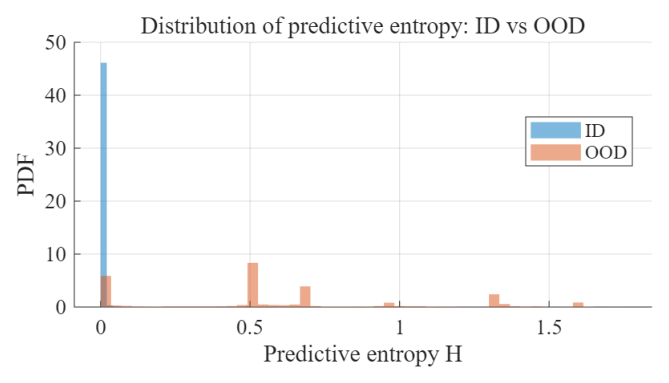 ID/OOD 구분뿐 아니라, ID 영역 내에서도 예측 엔트로피를 기준으로 오분류 가능성이 높은 샘플을 선별하고, 신뢰도 기반 예측 거부 또는 추가