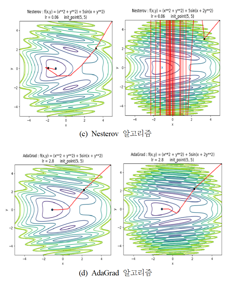 본 논문에서는 잘 알려진 SGD, SGD momentum, Nesterov momentum, AdaGrad, RMSprop, Adam의 6개 알고리즘과