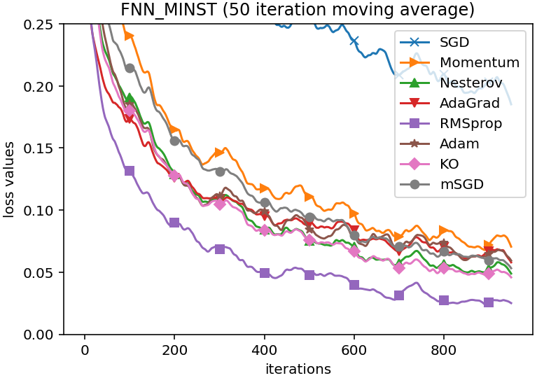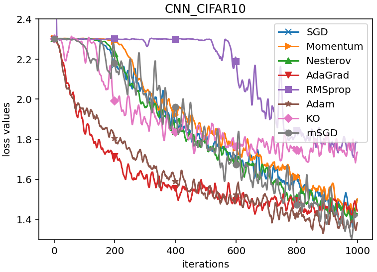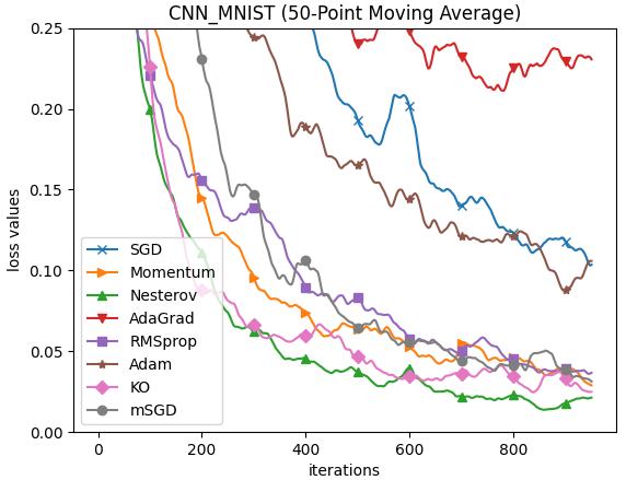 Deep learning, Machine learning, Optimization algorithm, SGD, SGD momentum, Nesterov momentum, AdaGrad, RMSprop, Adam, KO, mSGD