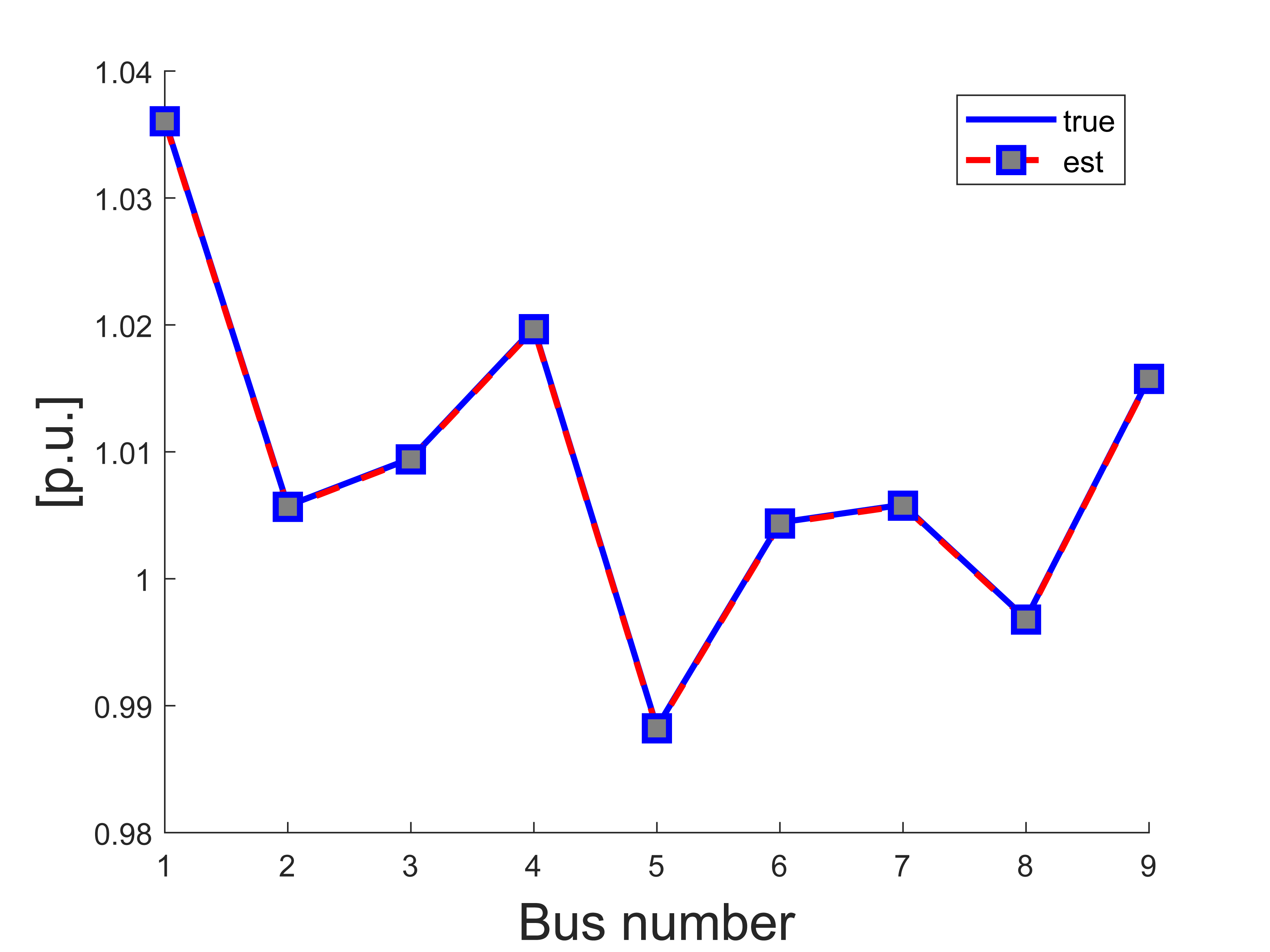 모선의 전압 페이저를 바탕으로, 계산 효율성과 수렴성이 준수한 CKF(Cubature Kalman Filter)를 적용하여 DSE를 수행하였다[16]. 이와 같은 과정을 통하여 최소 숫자의 PMU 만으로 강건한 동적 상태추정을 수행할 수 있는 경제적이고 효율적인 방법을 제안하였으며, WSCC 9모선