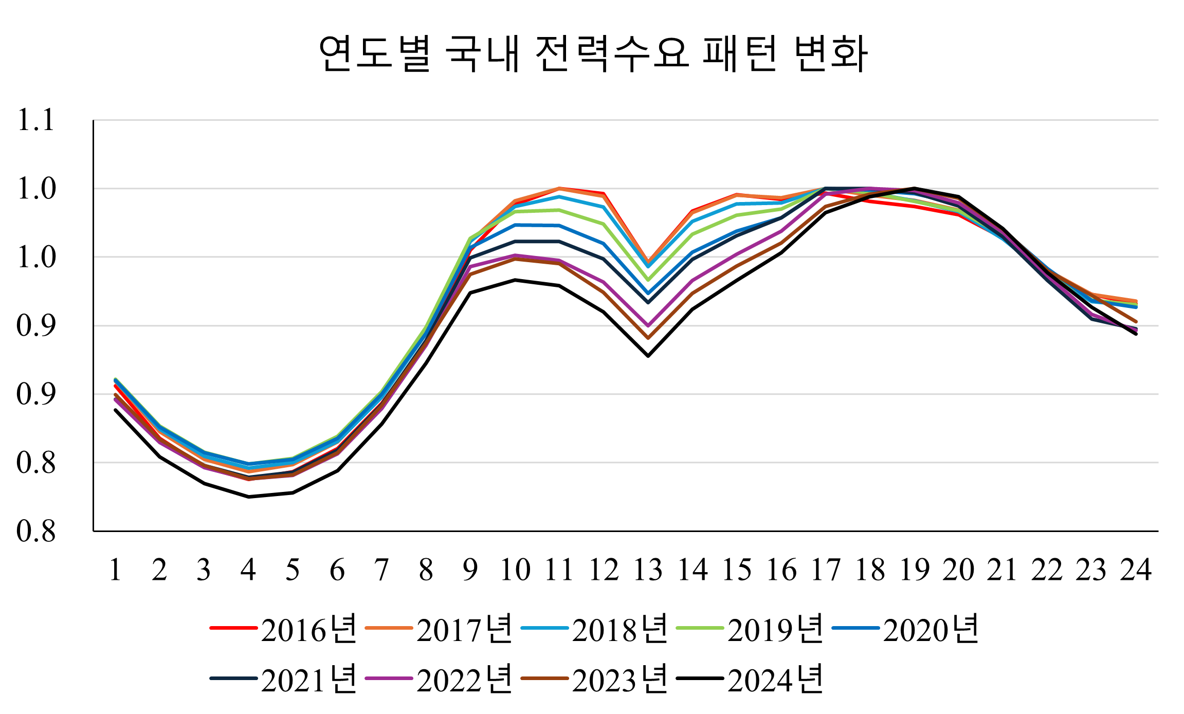 그림 1. 연도별 국내 전력수요 패턴 변화