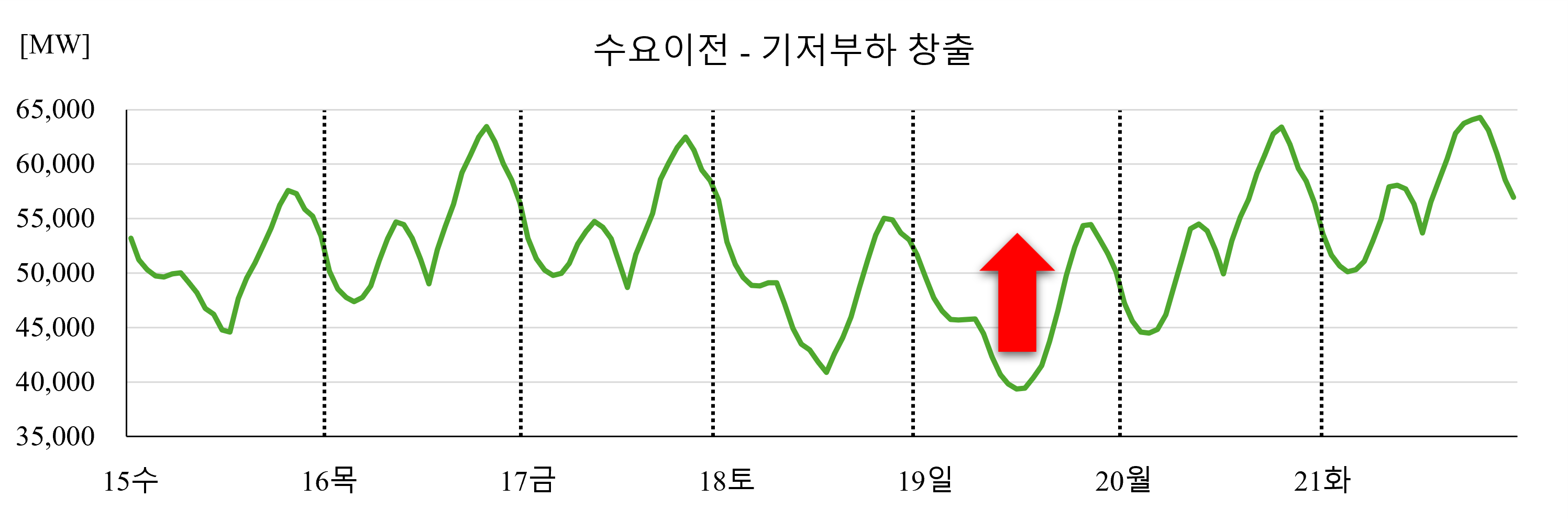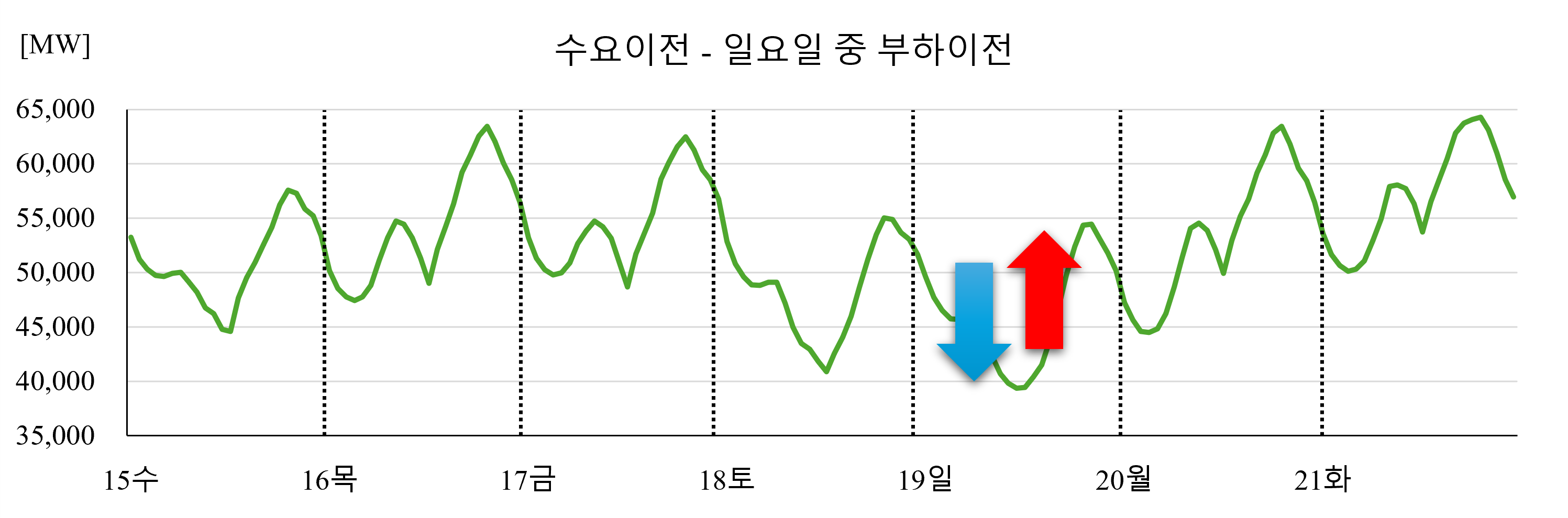 부하이전 및 발전량 감축에 대한 영향을 분석하는 것이 필요할 것으로 생각된다. 현 단계에서는 일요일의 부하 증가만을 고려했지만 차후엔 토요일도 부하증가를
