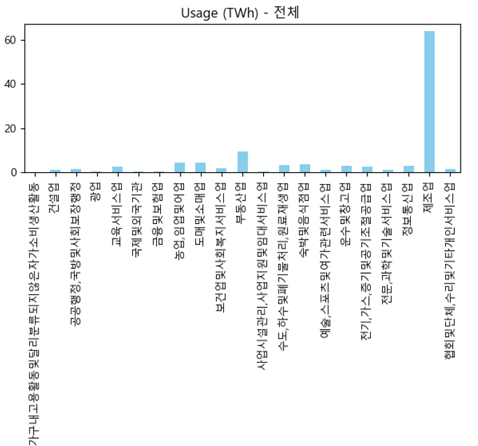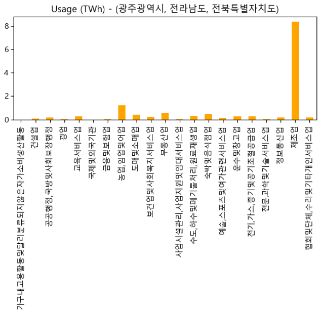 분석 결과, 호남 및 강원 지역 모두 제조업의 전력사용량이 타 산업분류에 비해 높은 것으로 나타났다. 따라서 호남 및 강원 지역의 제조업 업종을 세부적으로
