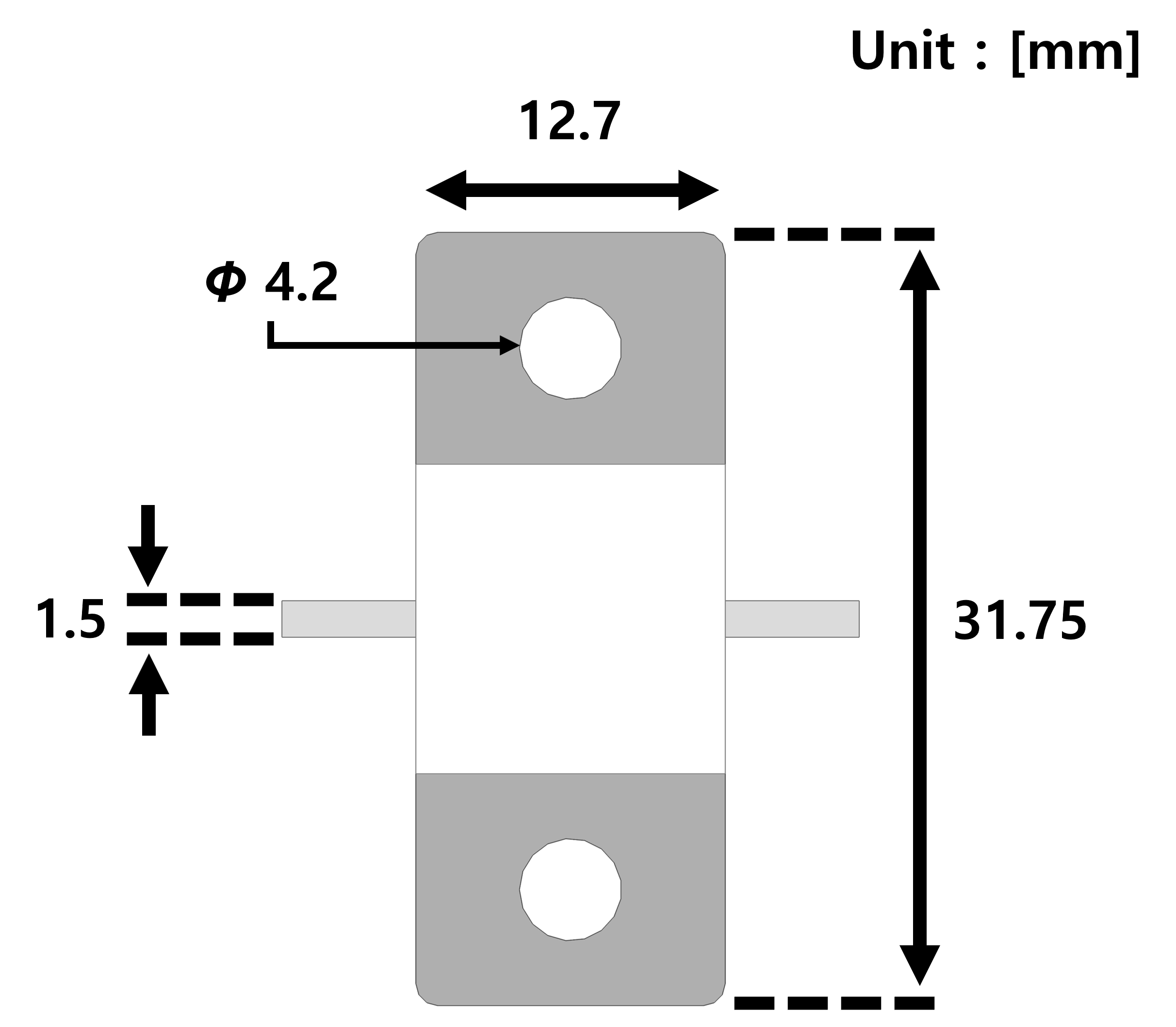 그림 1에 도시한 고전력 저항에 대한 명세는 표 1에 수록하였다. 해당 고전력 저항의 실제적인 특성을 고려하고 분석하기 위해 계측을 기반한 디임베딩(De-embedding) 기법을 통해 소자의 특성을