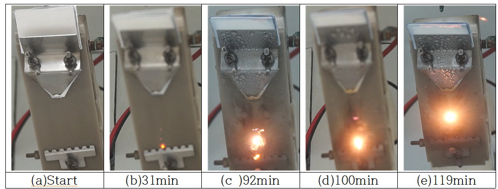 시험에 사용 될 경우 국부적으로 아킹에 의해 고온이 되면 물 분자가 휘발되면서 잠열을 빼앗아가기 때문에 표면 온도가 떨어지게 지는 것으로 결론에 이르렀다.