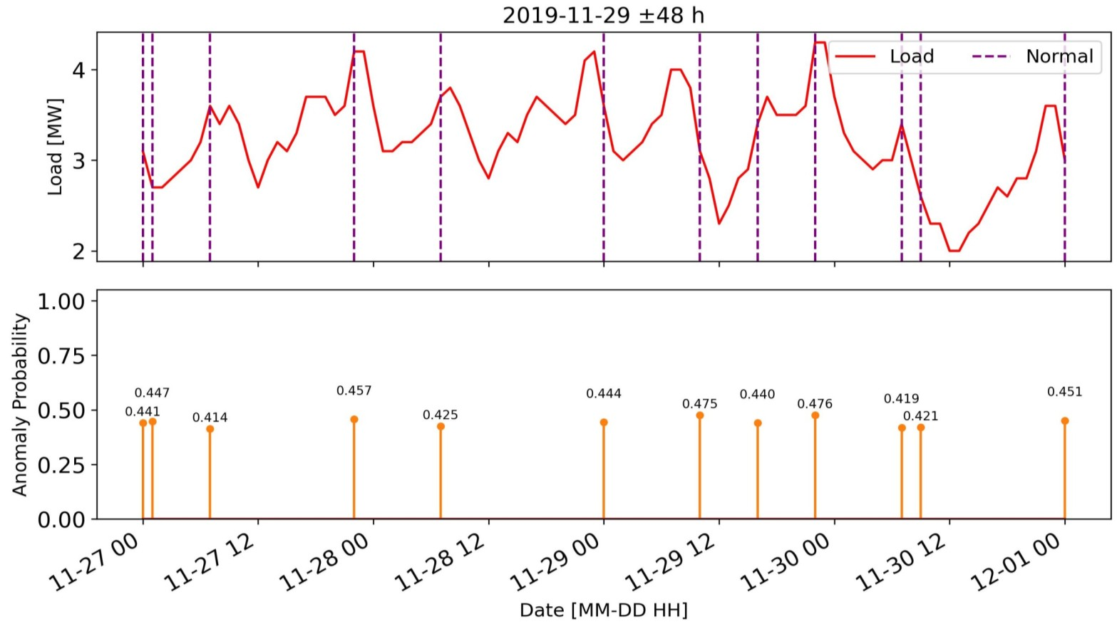 간주되지는 않는다. 다만, 그럼에도 불구하고 해당 날짜의 일부 탐지점에서는 상대적으로 높은 이상 확률(2019-11-29 11시경 0.475 등)이