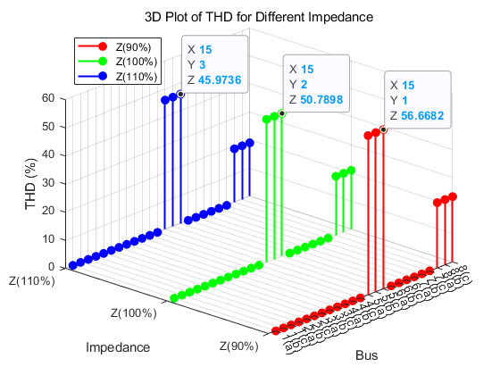 Fig. 5. 3D plot results of current THD based on IEC 61000-3-6