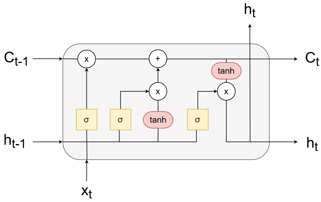 ์ฌ๊ธฐ์ $h_{t-1}$๋ ์ด์ ์์ ์ ์ถ๋ ฅ, $x_{t}$๋ ํ์ฌ ์์ ์ ์