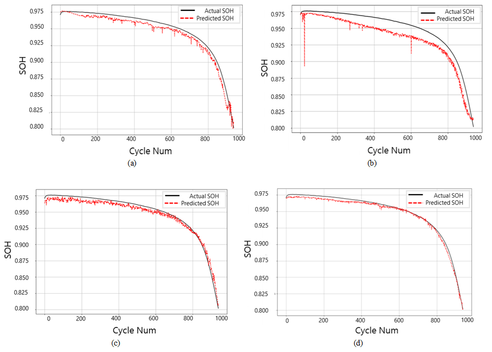 ํํ์ ์ผ์ ๋ฐ์ดํฐ๋ฅผ ์ฌ์ฉํจ์ ๋ฐ๋ผ ๋ฐฐํฐ๋ฆฌ์ ํน์ฑ์ ์ ํํ๊ฒ ๋ฐ์ํ SOH ์ถ์ ์ด ๊ฐ๋ฅํ๋ค. ์ด๋ฅผ ๊ฒ์ฆํ๊ธฐ ์ํด MIT aging battery ๋ฐ์ดํฐ์
