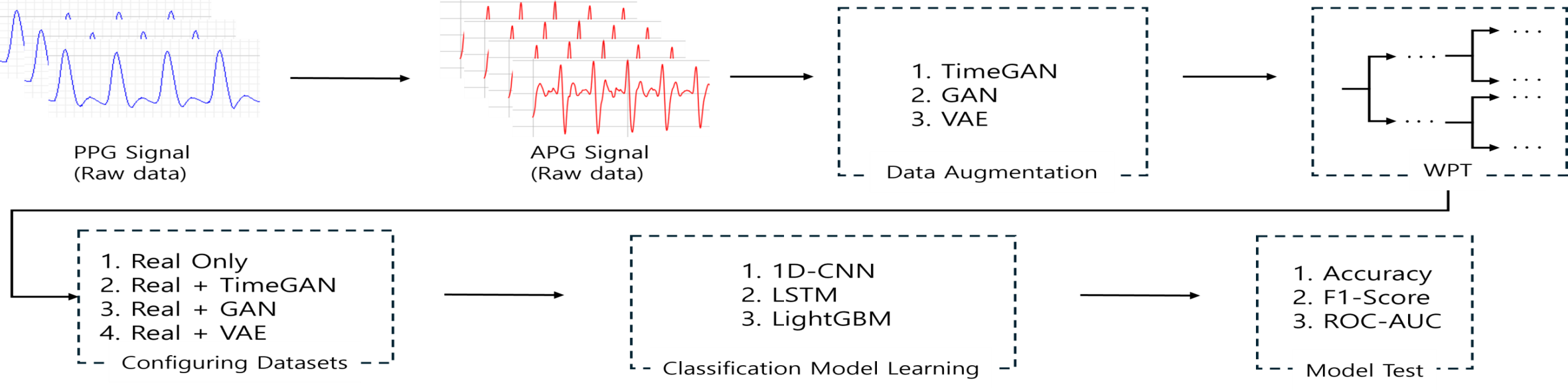 Acceleration Plethysmogram, Wavelet Packet Transform, Time‑GAN, GAN, VAE, Data Augmentation, 1D‑CNN, LSTM, LightGBM