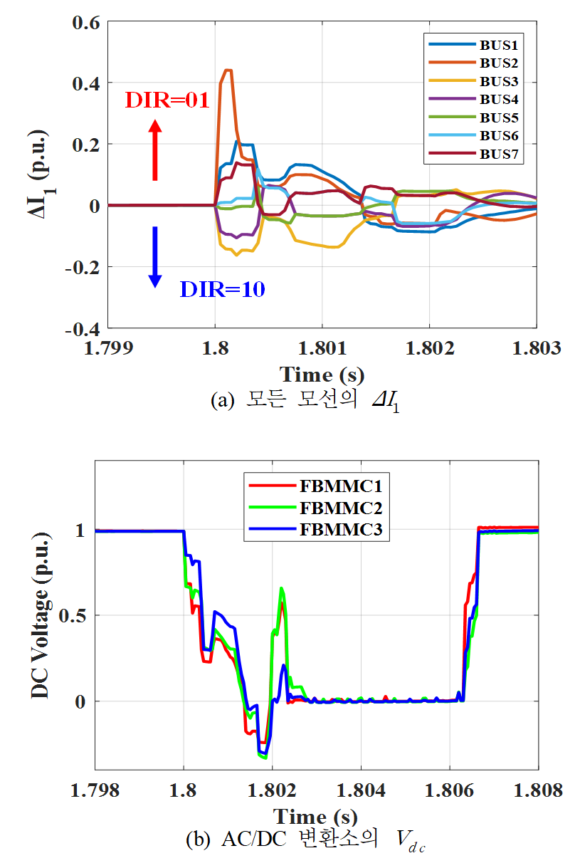 고장 구간 차단 이후 FBMMC의 $I_{dcref}$값이 복귀하여 DC 전압이 회복됨을 그림 9(b)를 통해 확인할 수 있다.