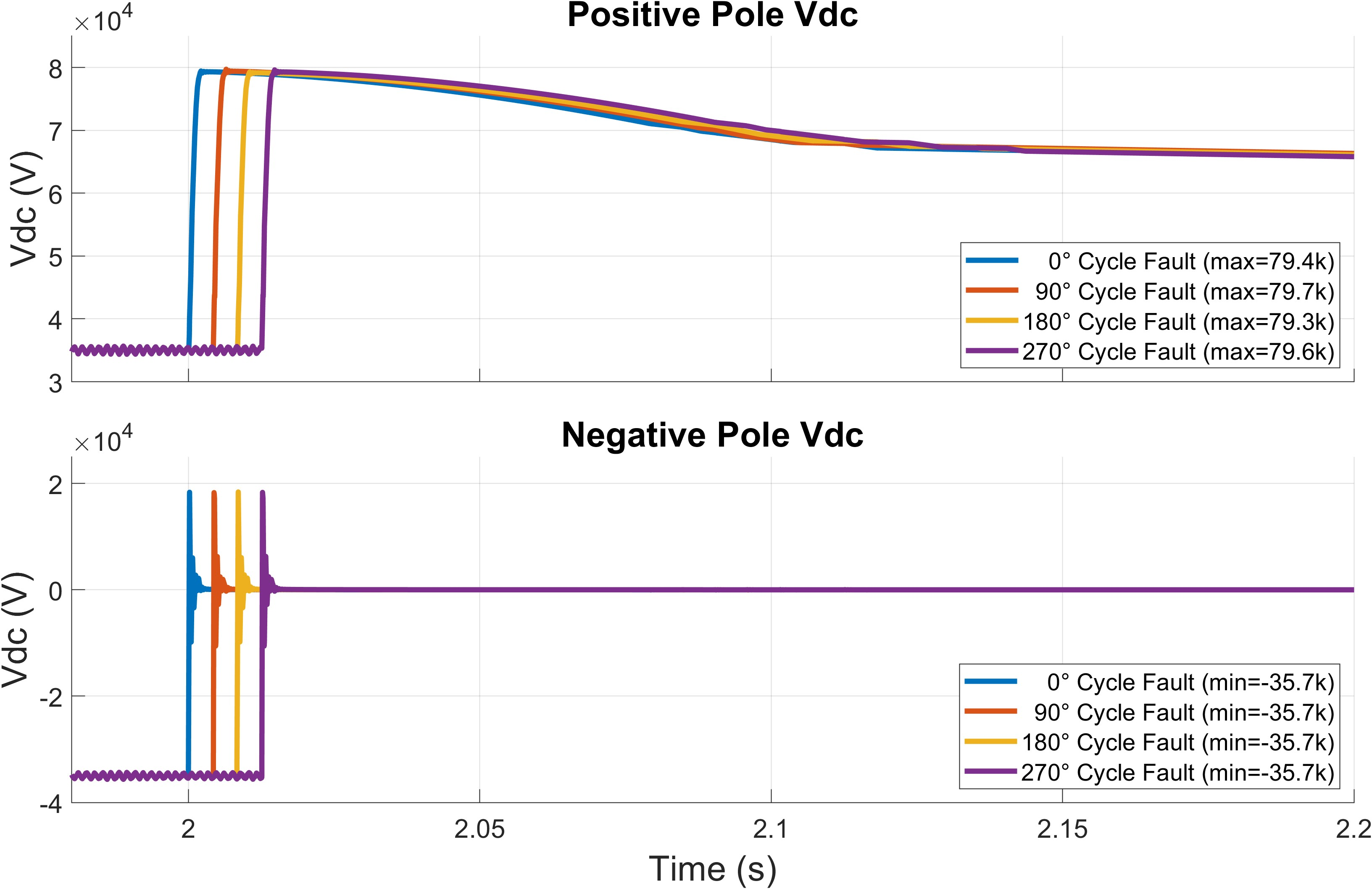 HB 서브모듈 기반 MMC-HVDC에서도 DC 측 과전압에서 가장 중요하게 확인되는 DC 지락 고장은 MMC-MVDC에서도 비슷하게 확인된다. 그