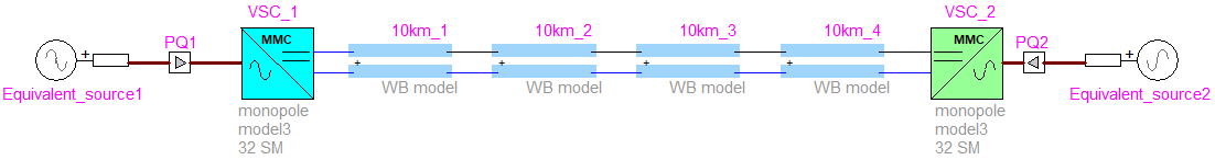 컨버터는 Arm당 HB 서브모듈이 32개 있는 SMP MMC 형태이다. 서브모듈의 개수 및 DC 커패시터와 Arm 리액터는 국내 MVDC 실증에 활용