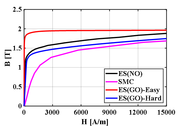 방향과 수직인 방향에서는 낮은 자기 포화 특성을 나타내므로, 적층 방향과 형상 설계에 세심한 주의가 필요하다[7].