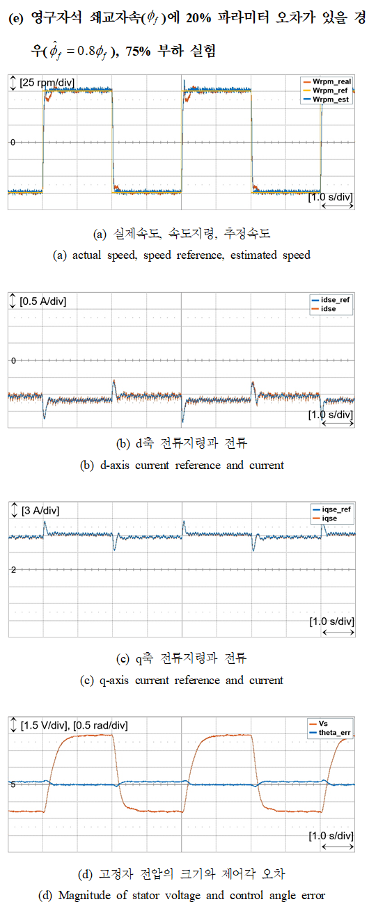 9(d)의 경우는 전류지령의 변경없이 전류지령이 MTPA 곡선을 따라 움직인다는 것을 알 수 있다.