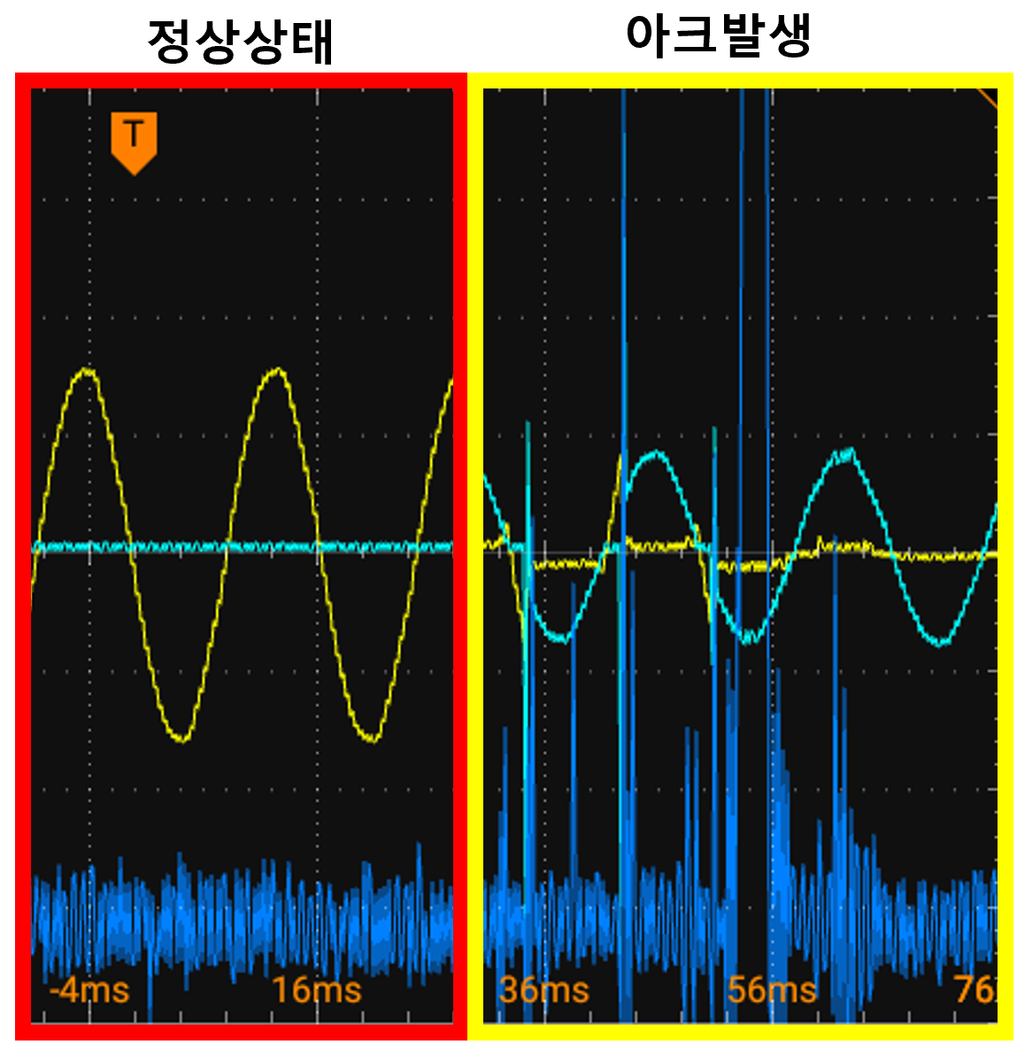 동시에 관측되었다. 이는 아크 발생 시 전기식 검출과 광학식 검출 간의 상호 보완에 대한 가능성 확인을 의미한다.