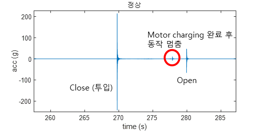 발생하고, motor-charging 과정을 거친 뒤, 작은 impact가 발생한다. 이후 사고 전류가 흐르거나, 임의 조작 시, open이 발생하여