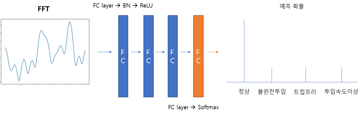 3.1과 같이 계산한 FFT를, 본 연구에서는 Fully connected layer를 이용한 결함 분류기로 결함 분류를 진행한다. 해당 모델을 FFT+FC로