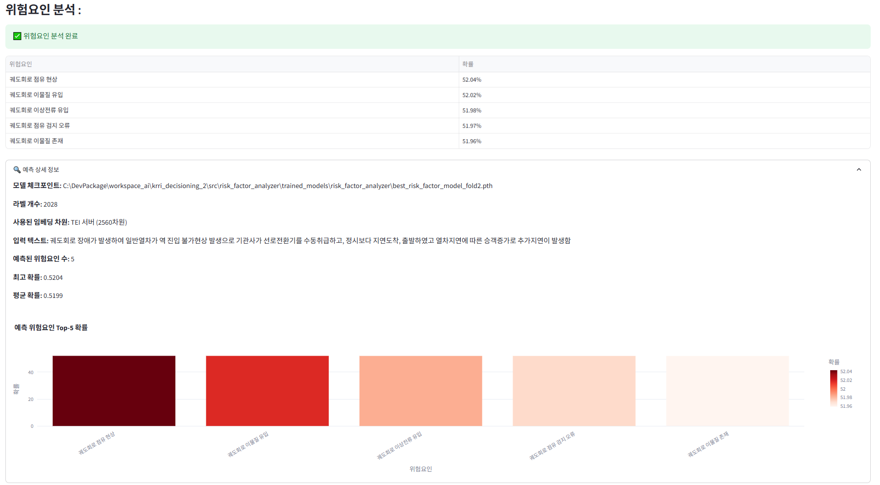 그 성능을 검증하였다. 철도사고/장애 데이터(2002-2021년, 13,255건)를 활용하여 위험 패턴을 분석하였으며, 사고유형 분류모델, 위험요인