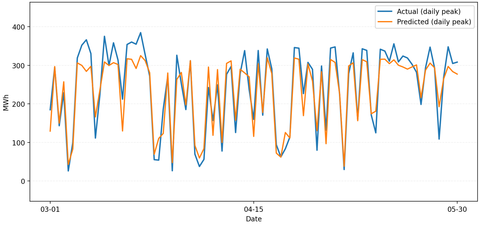 Fig. 7. Daily Peak: Actual vs. Predicted โ Spring